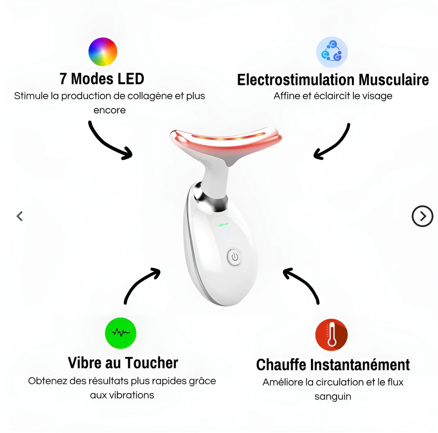 TONILIFT utilise une technologie de lumière LED combinée à des vibrations chauffantes pour stimuler la production de collagène, raffermir la peau et réduire les signes de l’âge. Chaque couleur LED cible un besoin spécifique : anti-rides, éclat, élasticité ou anti-imperfections.
