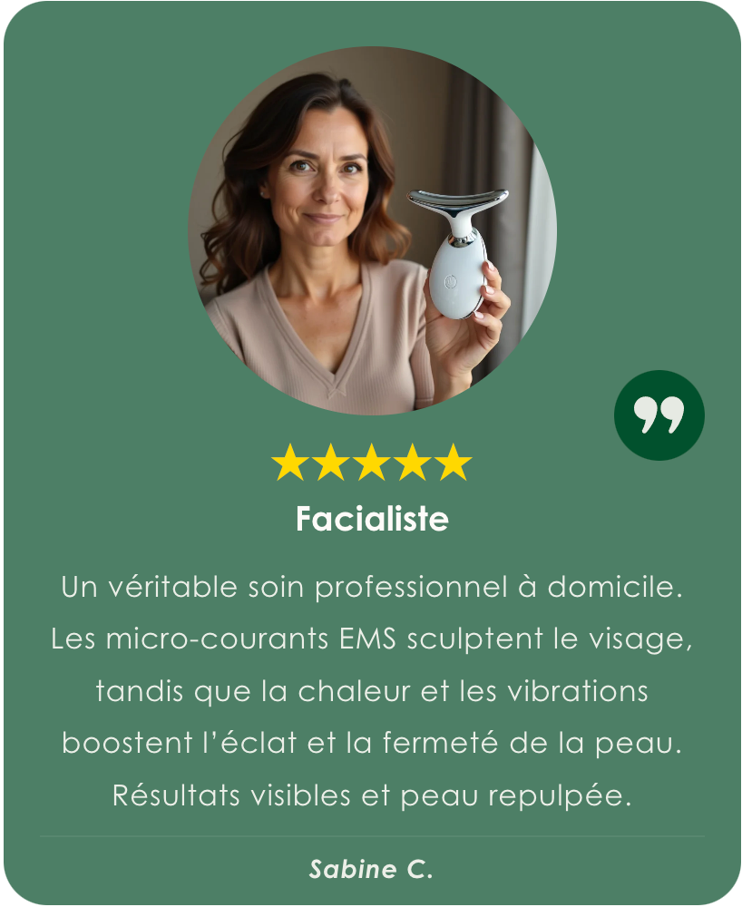 Oui ! Les utilisateurs constatent généralement une peau plus ferme et lumineuse après 1 à 2 semaines d’utilisation régulière (10 min par jour, 3 à 5 fois par semaine). Les résultats varient selon le type de peau, mais sont souvent visibles rapidement.